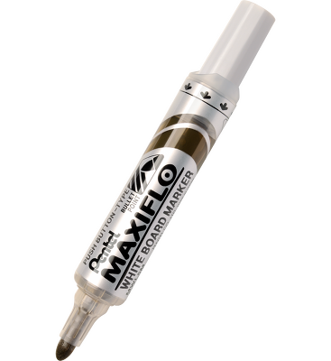 Marker MAXIFLO do białych i ceramicznych tablic. Płynny tusz dozowany w razie konieczności nawilżenia końcówki za pomocą tłoczka (zamiast tradycyjnego sączka). Marker pisze wyrazistą linią aż do ostatniej kropli tuszu. Kilkakrotnie dłuższa linii pisania niż w standardowych markerach z sączkiem - 1100 m. Nie zawiera substancji trujących ksylenu, toluenu ani polichlorku winylu. Nadaje się również na papier, plastik, karton. Wykonany w 50% z materiałów przetworzonych.
