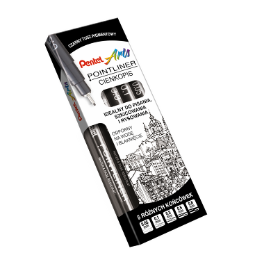Zestaw 5 precyzyjnych cienkopisów z czarnym tuszem pigmentowym odpornym na wodę oraz blaknięcie - ISO 14145-2:1998.
